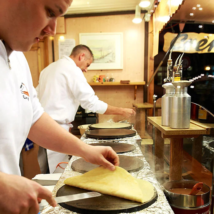 Als erfahrener Lebensmittelhersteller schätzen wir das Vertrauen unserer Kunden in beste Qualität. Dieses Vertrauen haben wir in über 40 Jahren nie enttäuscht. Dabei sind die kompromisslose Auswahl hochwertiger Rohstoffe, die kontinuierlich kontrollierte Qualität und die hohen Standards bei der Produktion der Garant für unseren Erfolg. Durch die Verwendung unserer Produkte lassen wir Sie Teil haben an diesem Erfolg. Mit unseren eigenen Crêpeständen pflegen wir auf Märkten in der Umgebung den direkten Kontakt zum Endverbraucher.