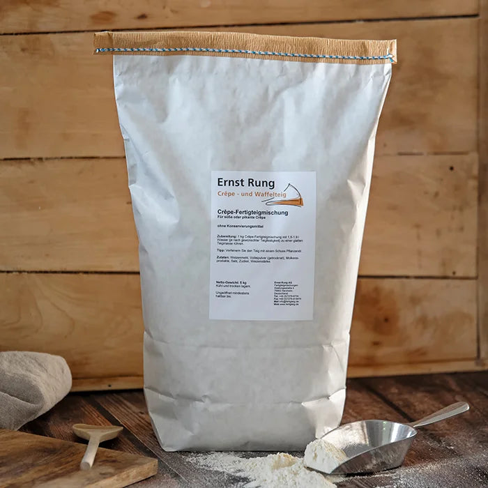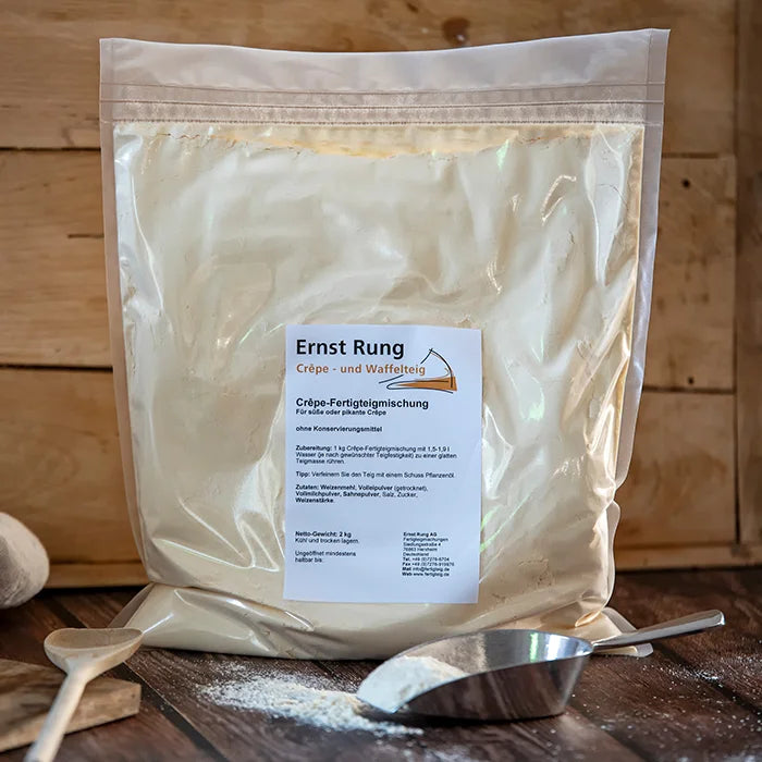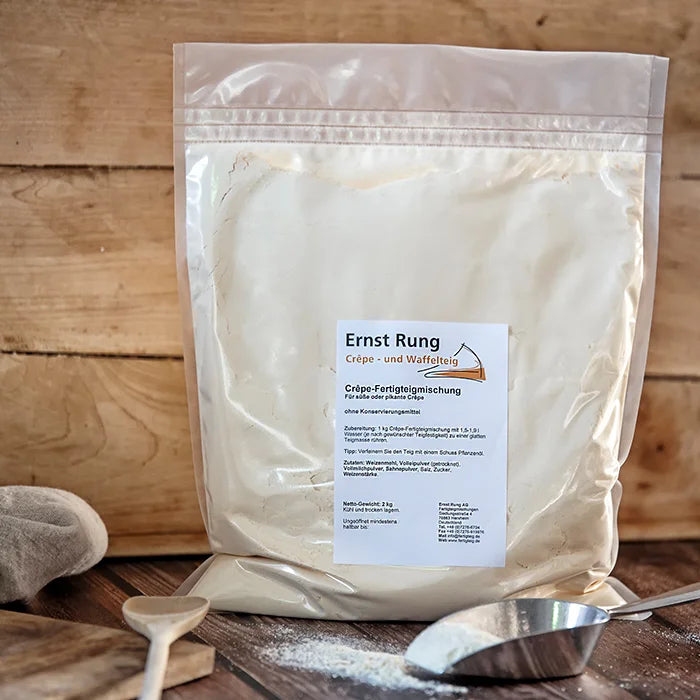 Die Crêpe-Fertigteigmischung ergibt einen neutralen Teig und eignet sich für süßen und pikanten Crêpe.